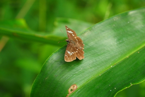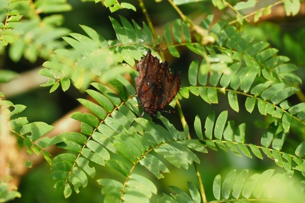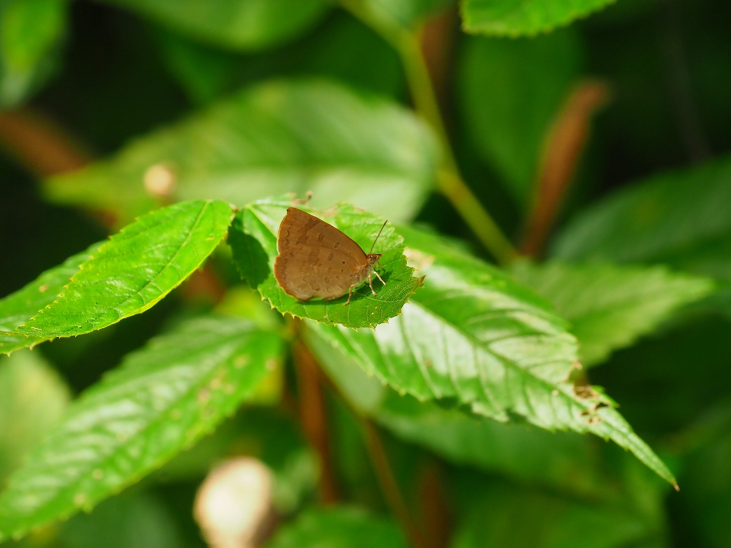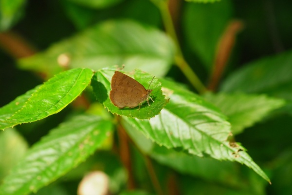 何やら茶色い翅のチョウが…