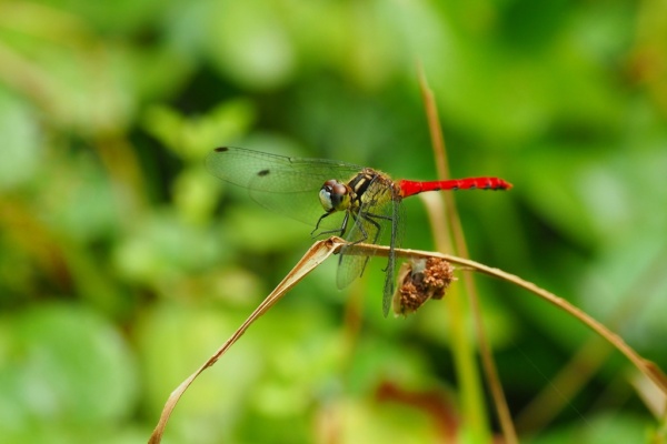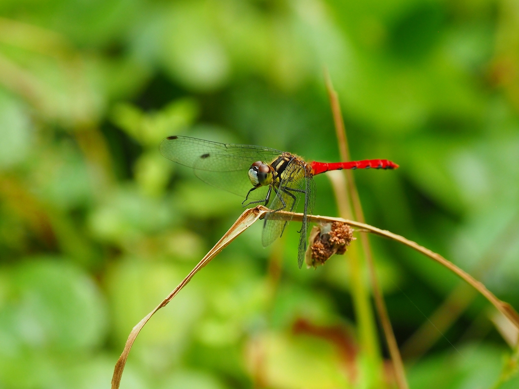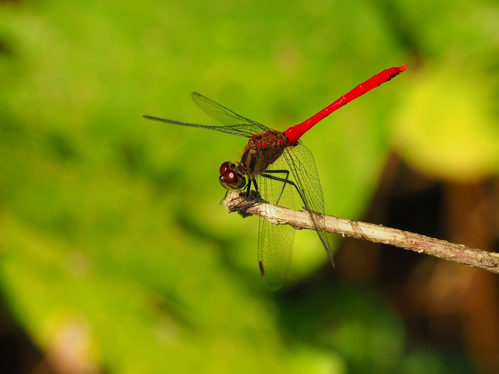 これは顔面が白い ヒメアカネです。小さくて赤が鮮やかな愛らしい赤トンボです。