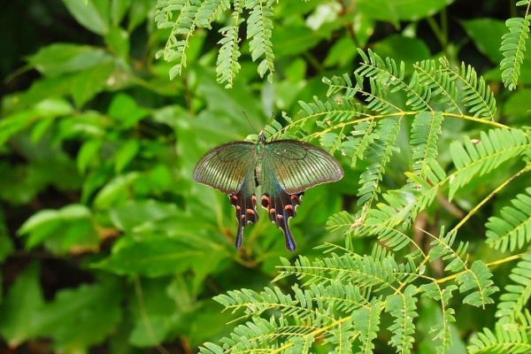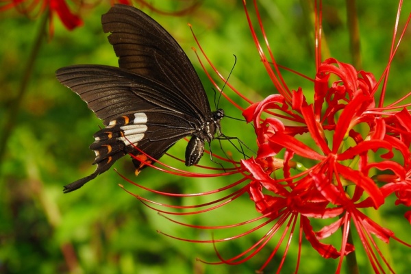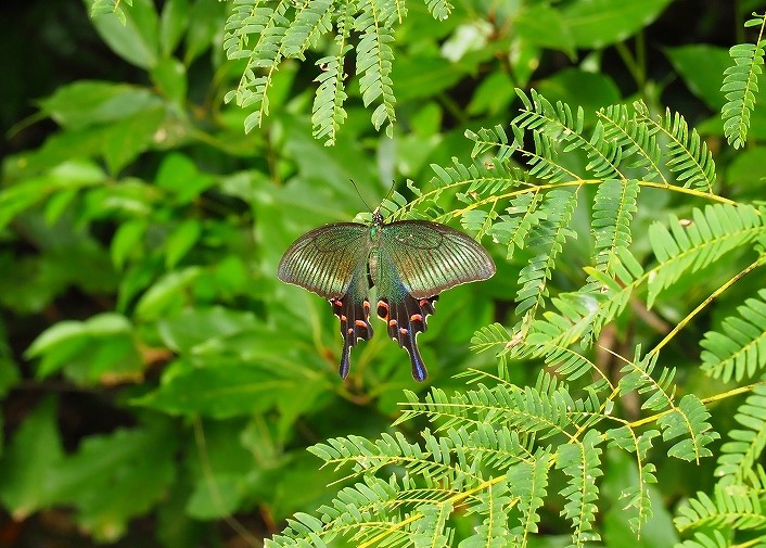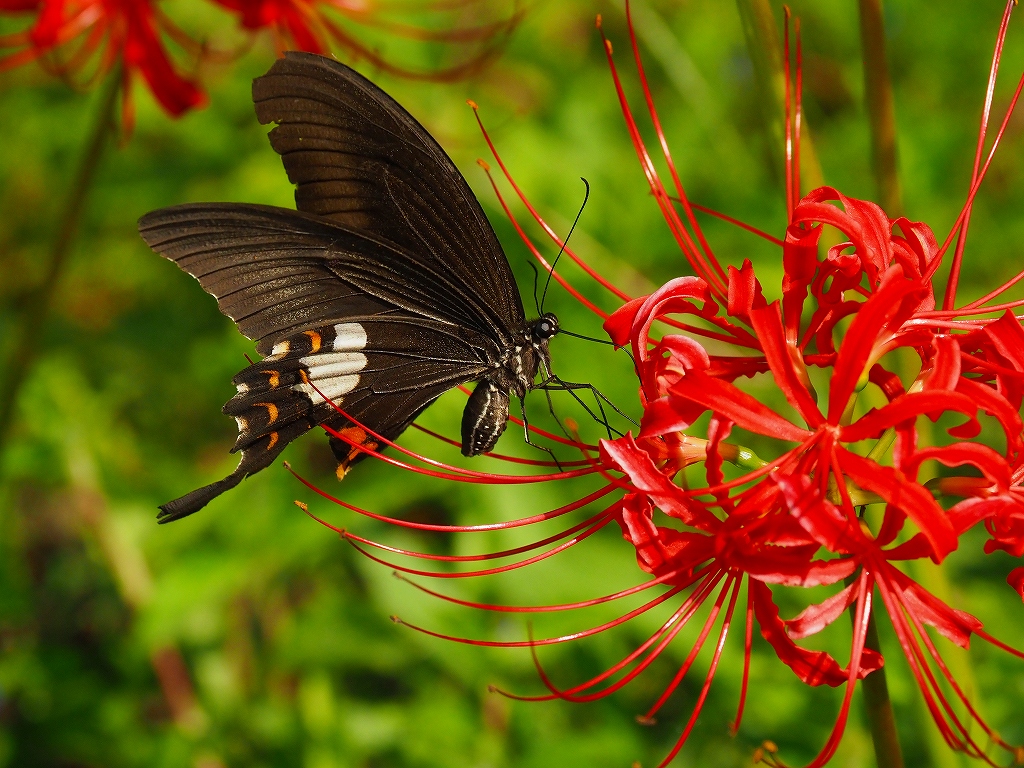 ミヤマカラスアゲハのメス。直前までヒガンバナで吸蜜してました。