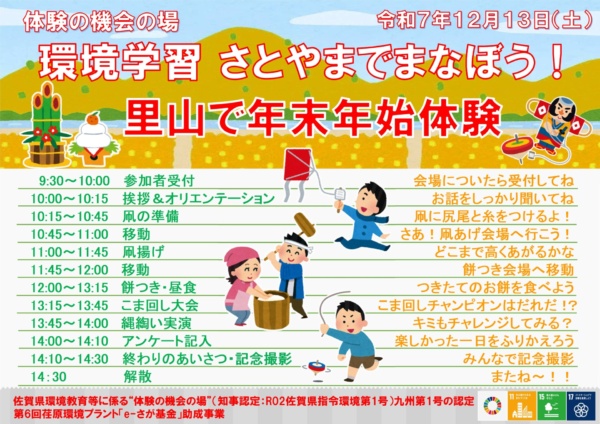 第20回 環境学習 さとやまでまなぼう!「みんなでやろう! 餅つき・凧揚げ・こま回し」