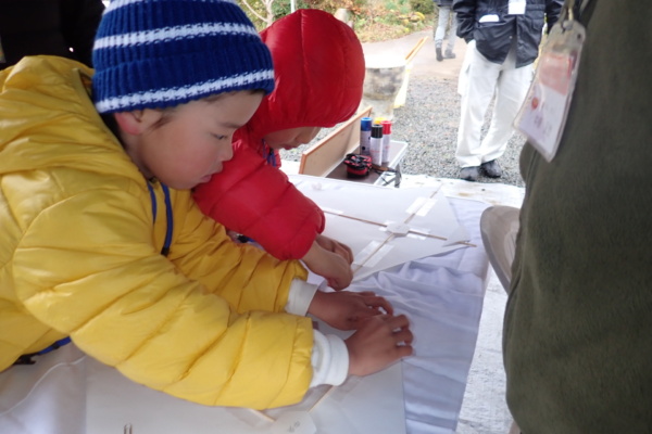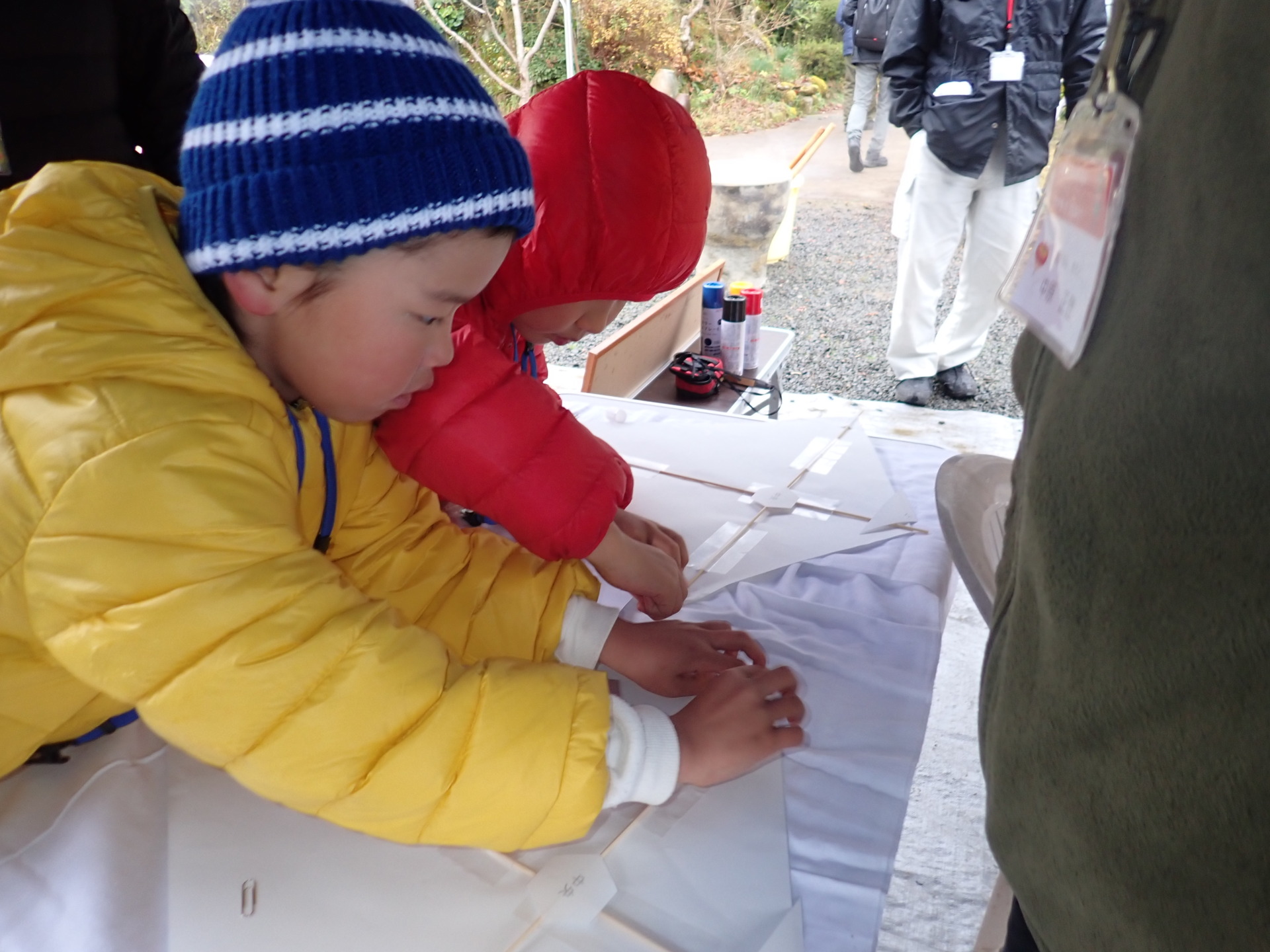 今回は昨年に引き続き、正月遊びがテーマです!餅つき、こま回しの他に、凧揚げ体験もしてもらいました!