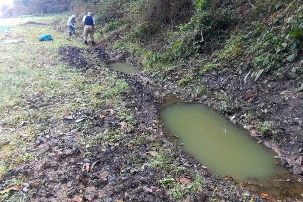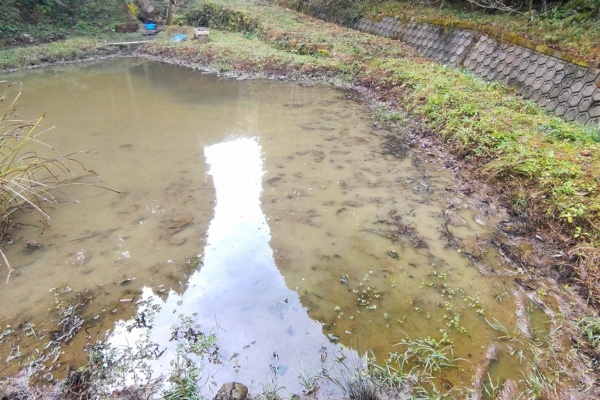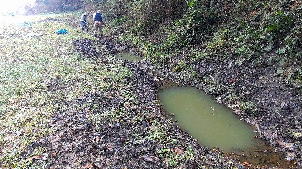 カスミサンショウウオの産卵場所の環境改善が終わり、池の水位変動にも着手することができ、