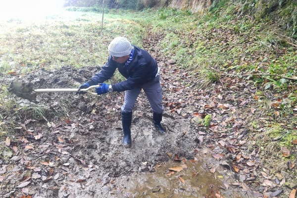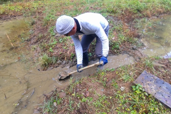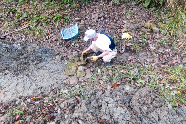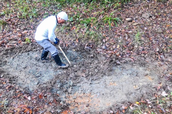 2025年12月23日 カスミサンショウウオ産卵場所の環境改善作業(泥上げ)第二弾を実施しました。