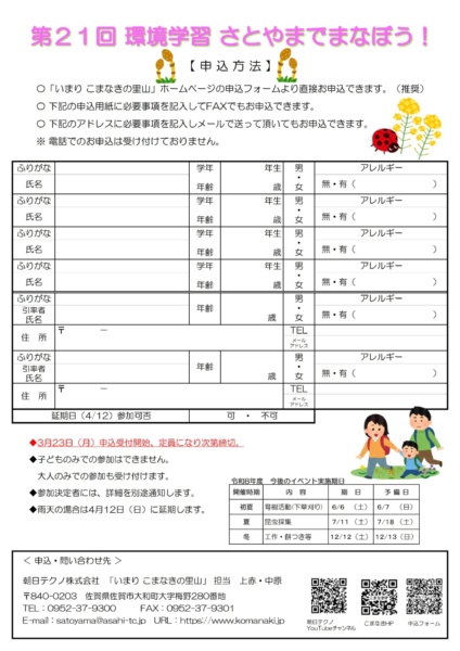 [イベント開催案内] 【4月11日開催!】第21回 いまり こまなきの里山 イベントのお知らせ